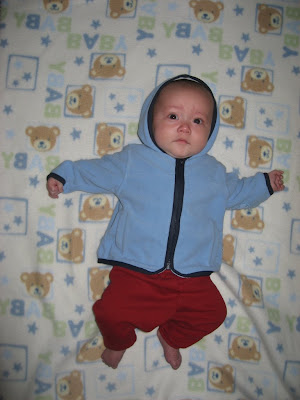 He is wearing a new outfit today. I had to take the tags off, but I think it's quite cute.